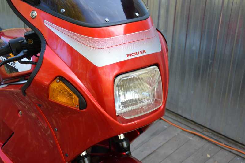 Na moto je instalovaná dobová celokapotáž Pichler, dobový Krauser Top case s instalovanými světli a blinkrami.
