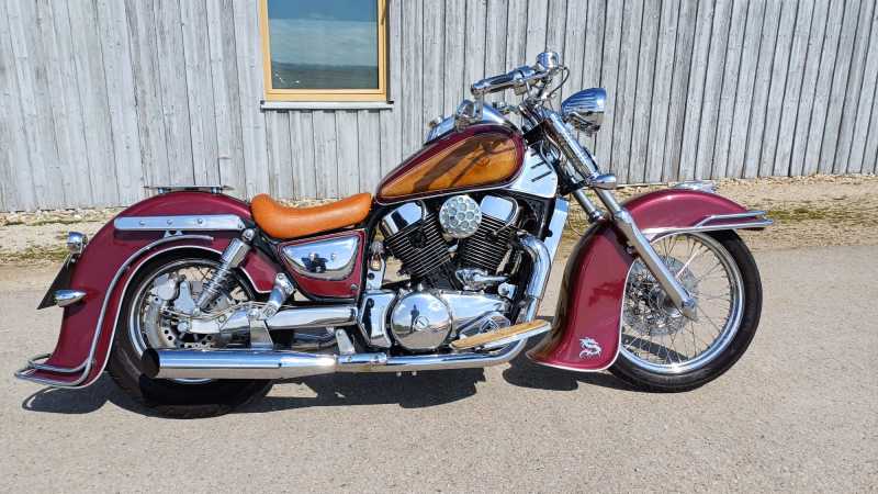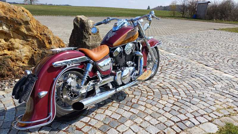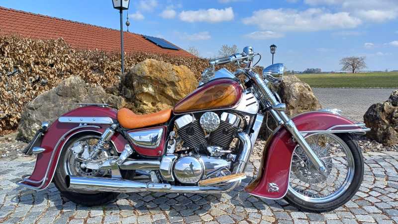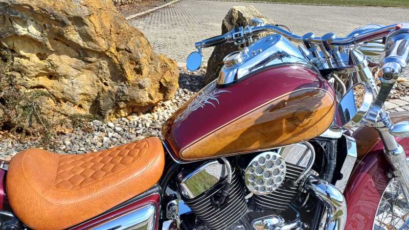 1. majitel, 2x klíč, nový D TUV do 03/2028 ( veškeré úpravy zapsány a uznány na TUV pro provoz na komunikacích ), ˇUprav je na moto nespočet, jako např. individuální profi lak, chromovaný kardan-rarita!!!, budík, řidítka, blatníky, rámy, sedla, stupačky, atd, adt.
