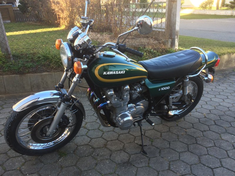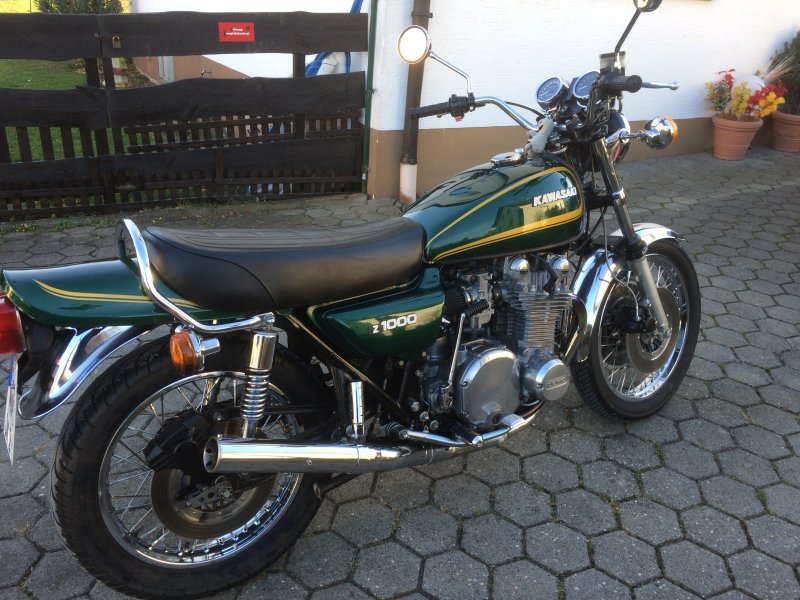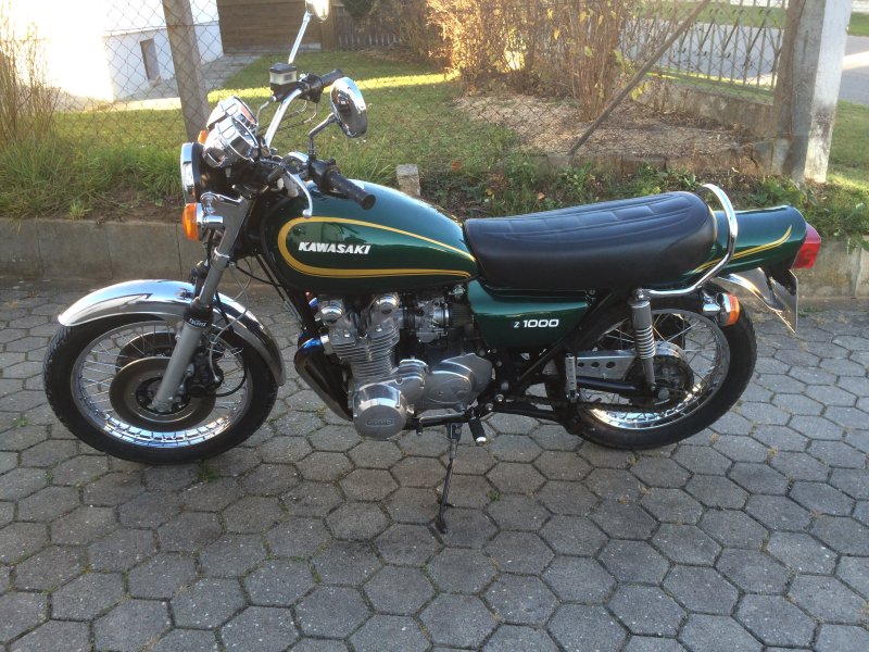 Krásný, originální stav. Pouze 2 majitelé! Z1F – barva Luminous Green, výfuk Marving – oficiální dobový doplněk zapsaný plnohodnotně v dokladech + otevření filtry, stabilizátor předních vidlic.
